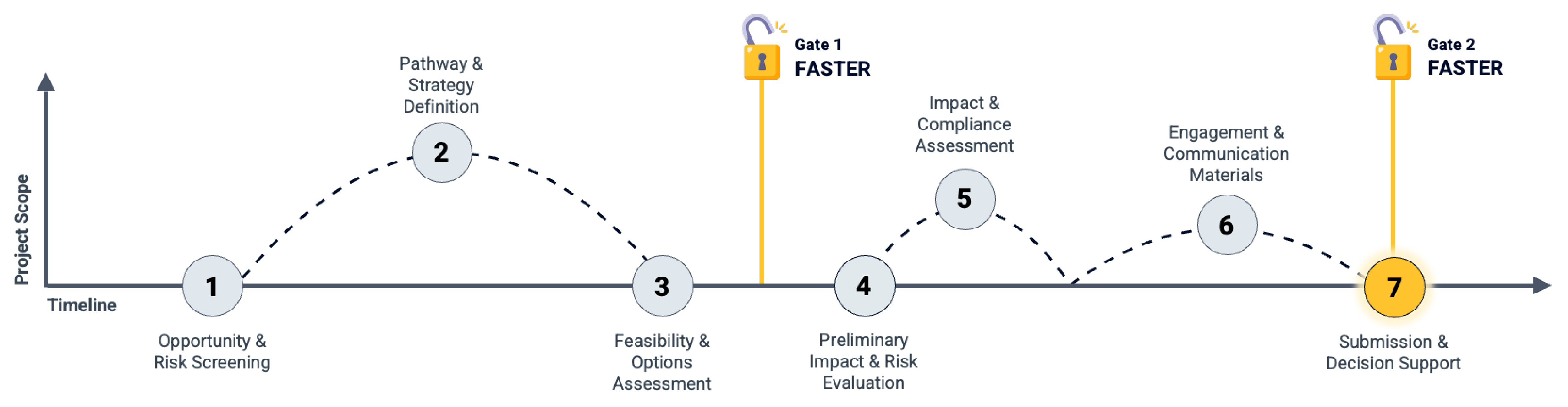 ✓ Scoping Studies: Rapid, data-driven reviews of key environmental and regulatory factors.